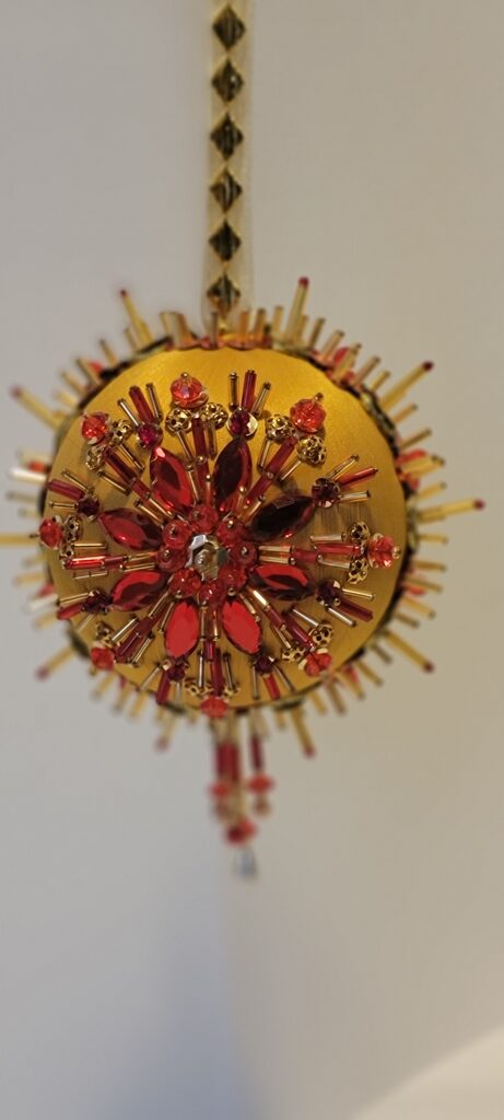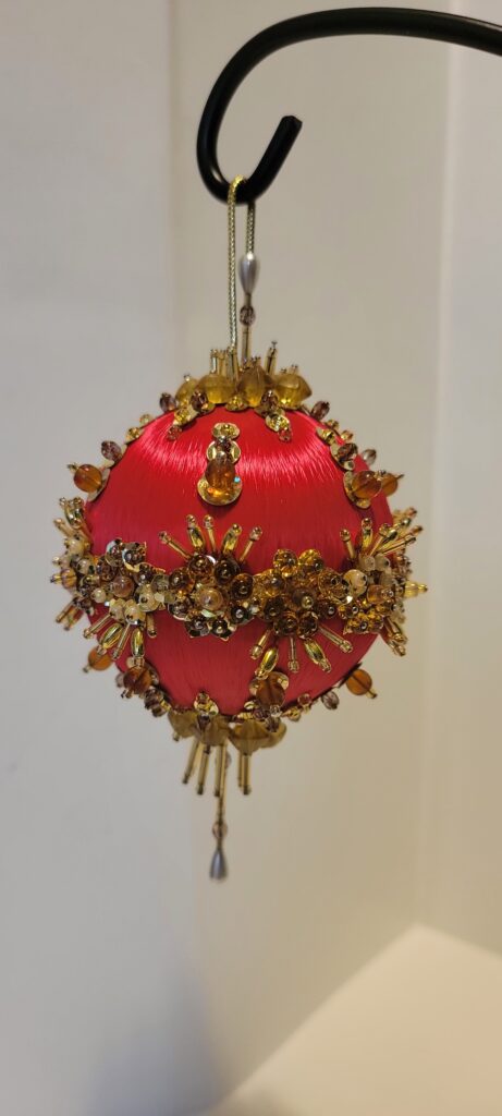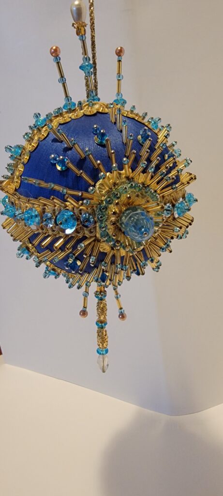 Push Pin Ornaments. Collection of Vintage or Retro Style Beaded Ornaments. Handcrafted and given a secret temporary name. Made of satin and beads, these decorative ornaments are ideal for all occasions. Add a unique, whimsical touch to your collection. With intricate beadwork and a festive design, these ornaments bring a touch of charm and nostalgia to your decor.