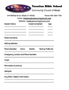 VBS enrollment sheet